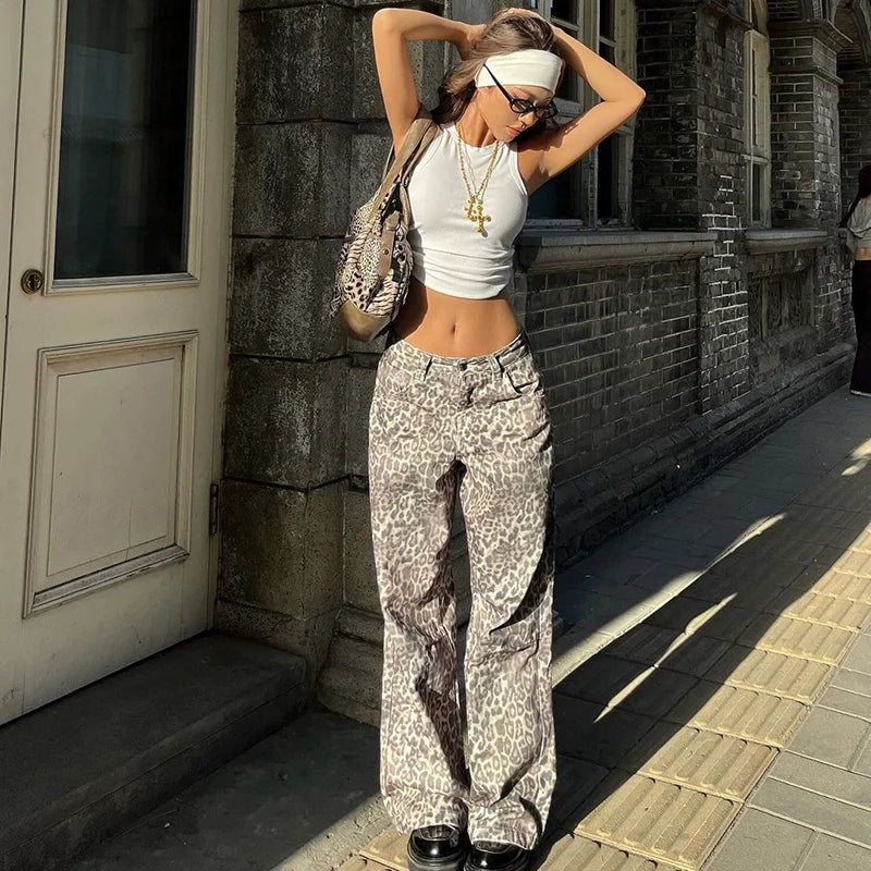 Get ready to turn heads with the Jasleen Leopard Print High Waist Jeans, a street-style...