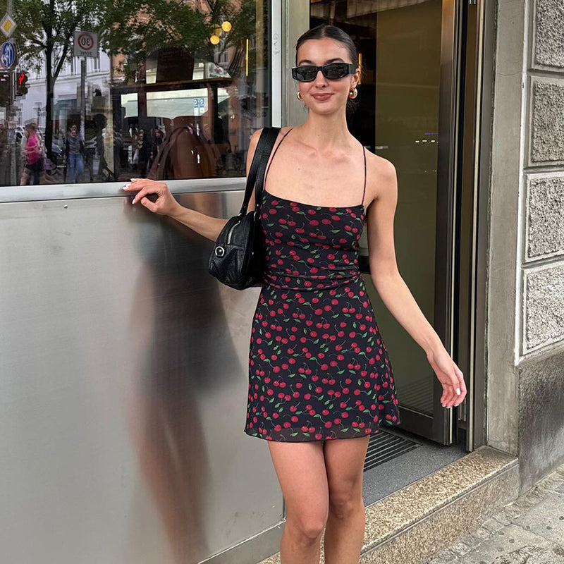 Get ready to turn heads with this Kirby Cherry Print Mini Dress! The playful cherry...