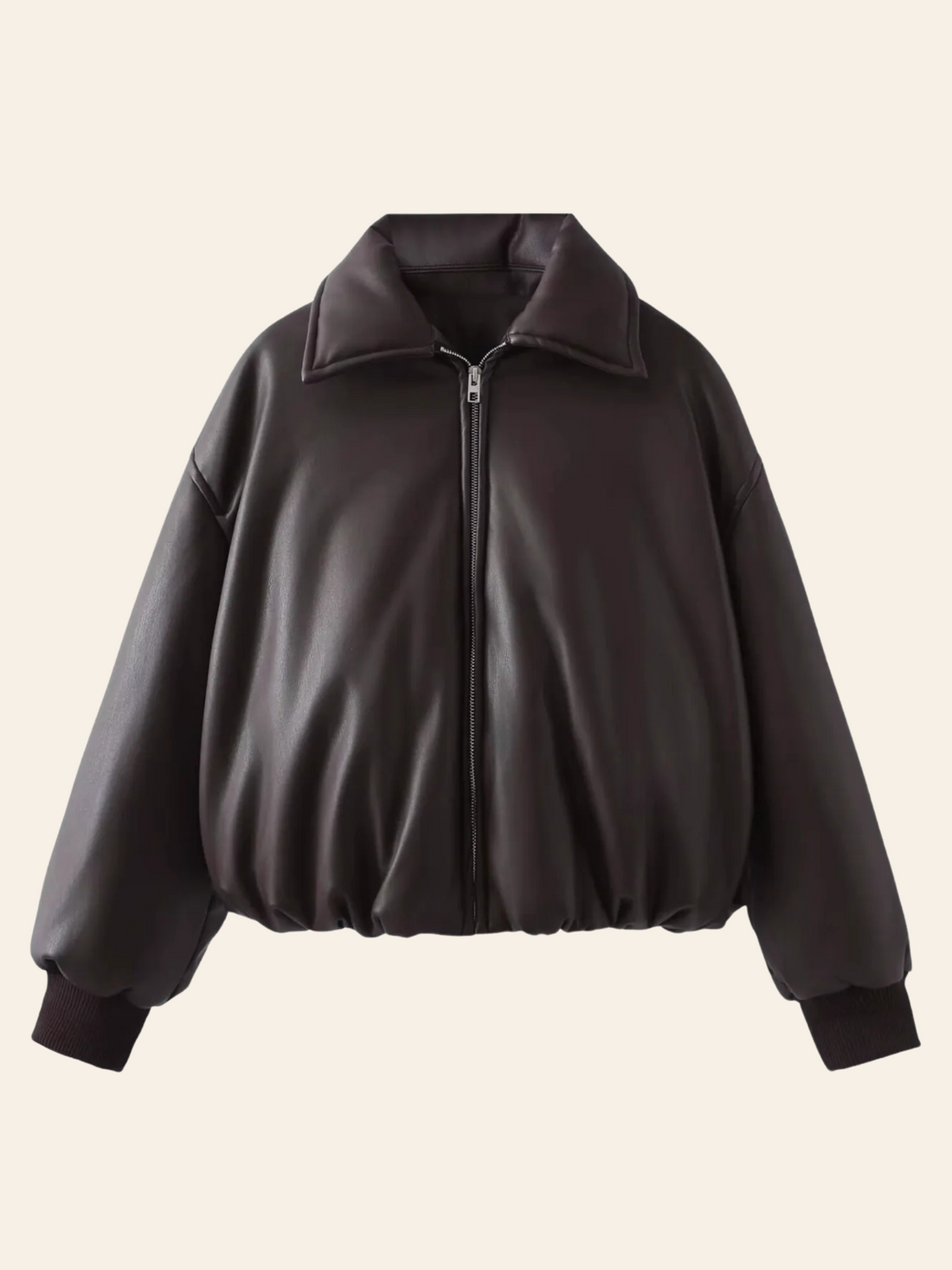 Embrace the colder months in elevated style with the Alizay Faux Leather Puffer Jacket. This...