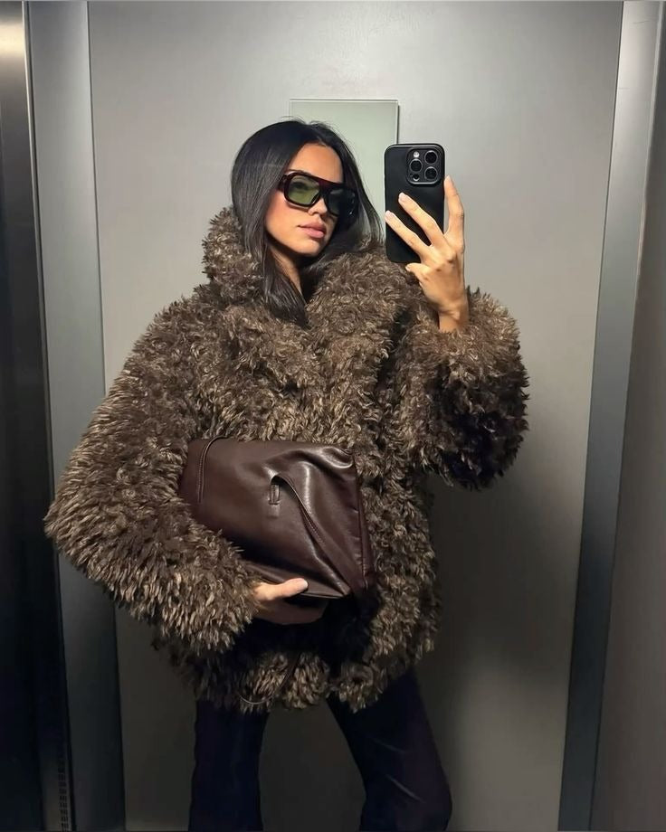 Embrace cozy elegance with the Zoee Plush Stand Collar Jacket, a perfect blend of comfort...