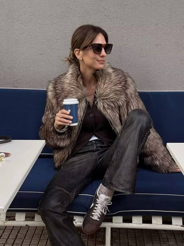 Step into elevated street style with the Ezmae Cropped Faux Fur Lapel Jacket. This luxurious...