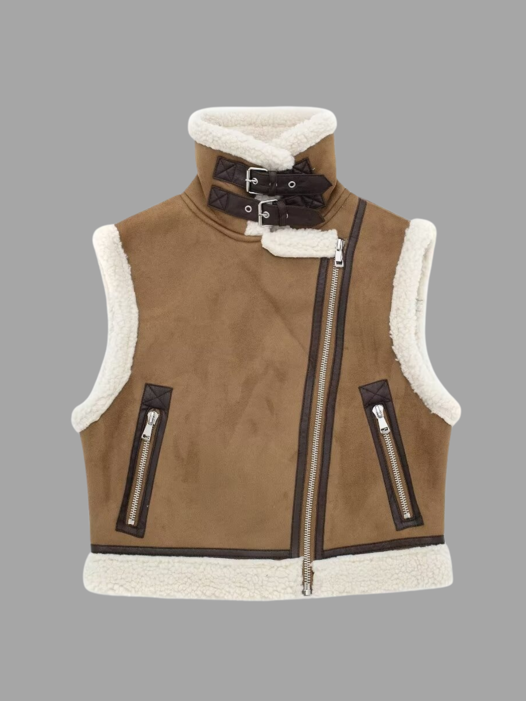 Embrace chic autumn layering with the Airabella Cropped Faux Fur Vest, a standout piece designed to elevate any ensemble. Crafted in a rich, solid hue as shown, this plush vest features a stylish turn-down collar and a sleek front zipper, embodying effortless street-style sophistication. Its loose fit ensures comfortable wear while maintaining a fashion-forward silhouette. Layer it over a long-sleeve top and tailored trousers for a polished look, or pair with a simple tee and denim for an elevated casual vibe.