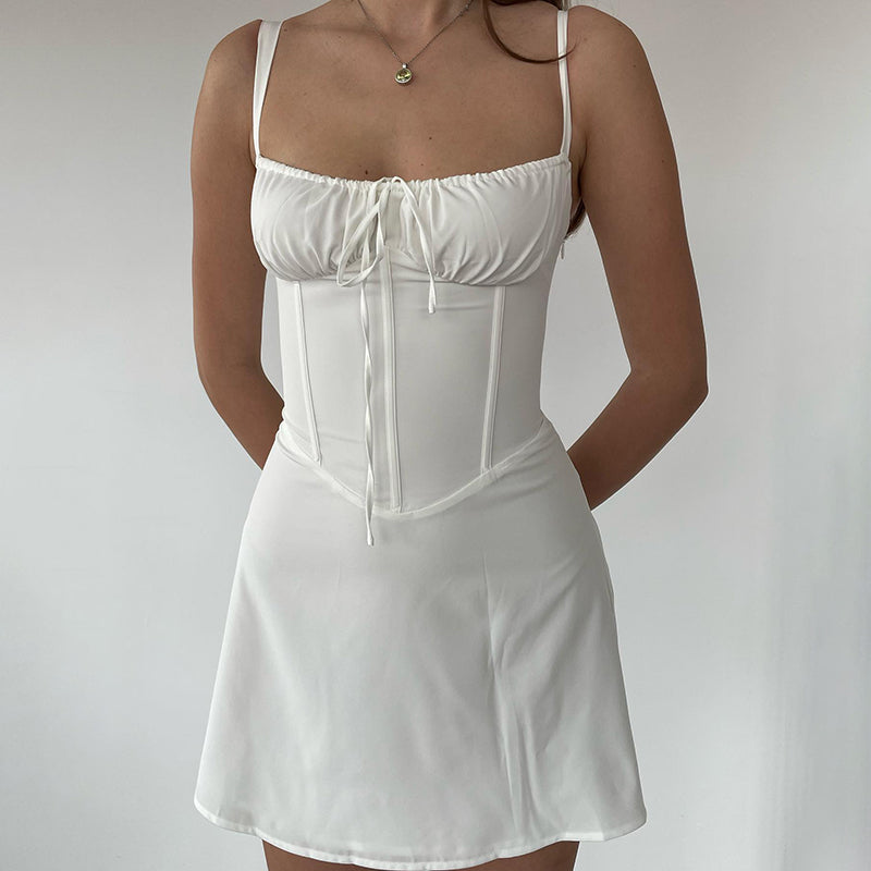 Get ready to turn heads in the Aryanna A-Line Mini Dress! This figure-flattering dress features a high waist and a strappy low-neck design that adds a touch of playfulness to your look. Perfect for any spring or summer occasion, the dress is available in both white and black colors from the LaPose collection.