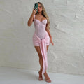 Embrace effortless allure with the Daphne Lace Bodycon Mini Dress, a captivating piece designed to flatter and enchant. This exquisite dress features a delicate lace overlay that accentuates its form-fitting, mini-length silhouette, perfect for any special occasion. With its alluring V-neckline and elegant spaghetti straps, this dress is available in an array of captivating shades including Pink, Green, Apricot, Black, Red, Light Blue, Mocha Brown, and Yellow.