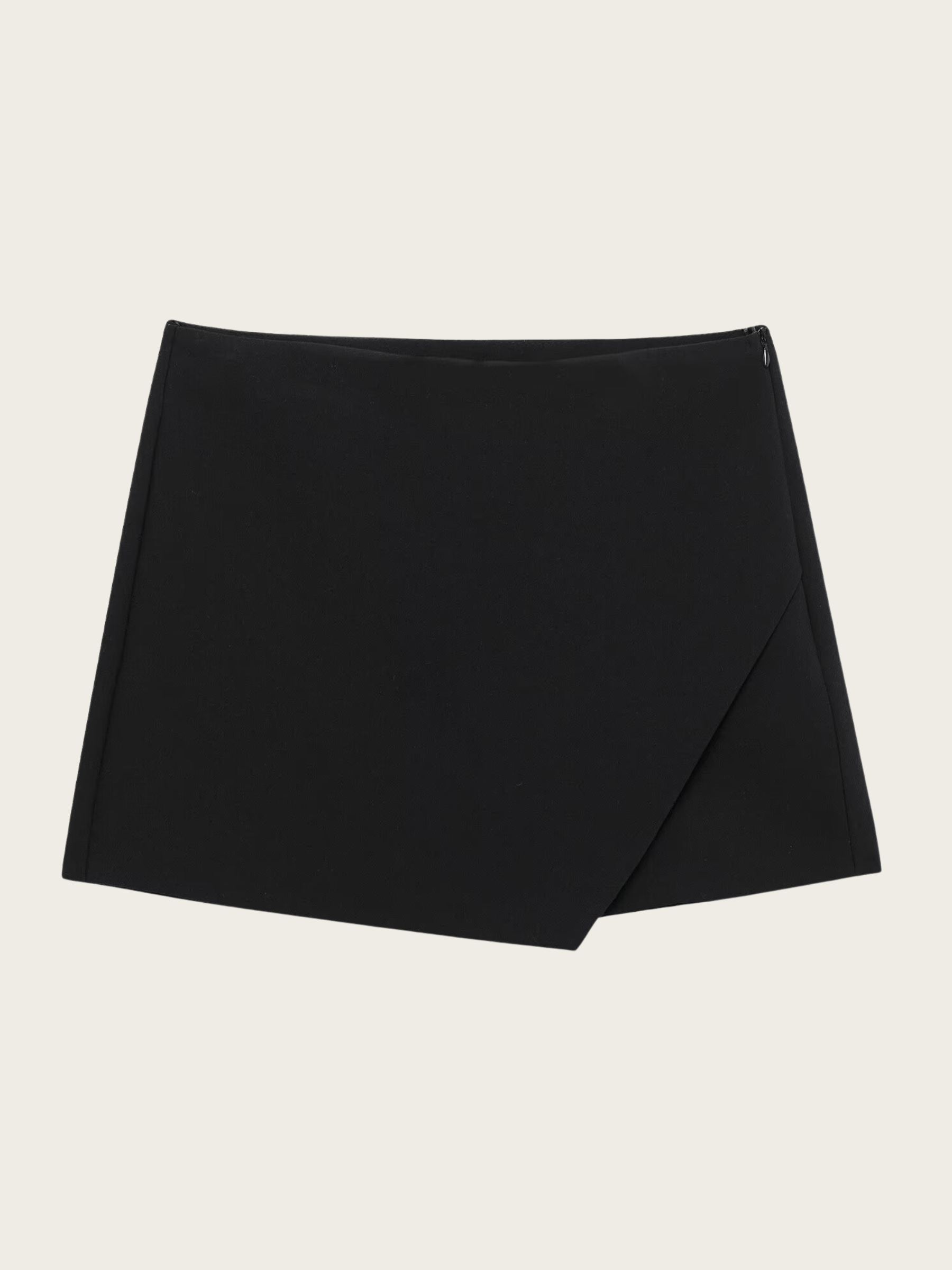 Embrace modern flair with the Everest Asymmetric Skort, a sophisticated piece designed for the contemporary wardrobe. This high-waisted skort combines the comfort of shorts with the chic appearance of a skirt, making it incredibly versatile. Available in classic Black, versatile Beige, and sleek Gray, its unique asymmetric front overlay adds an intriguing touch to any ensemble.