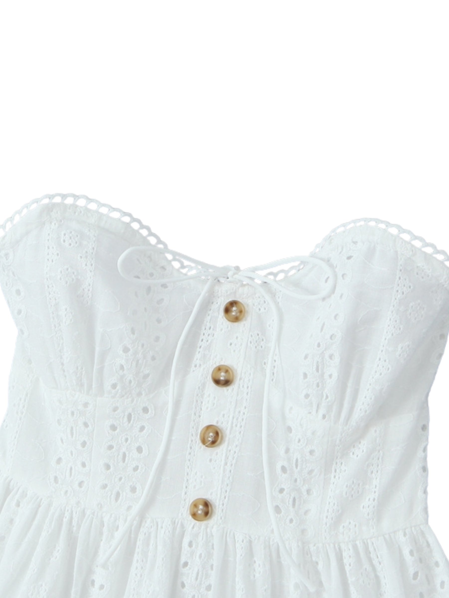 Get ready to turn heads in the Julieann Strapless Mini Dress! With its sleeveless and high waisted design, this dress is perfect for a romantic and feminine look. The heart neck adds a playful touch while the button detailing and pleated skirt give it a slim and sophisticated fit. From the LaPose Spring-Summer Collection.