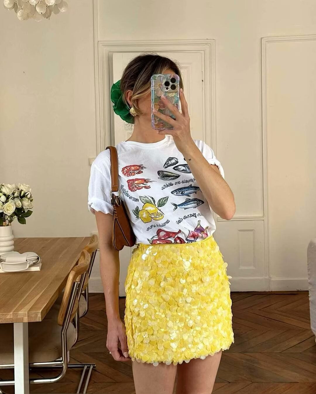 Embrace dazzling style with the Kathia Sequin Mini Skirt, a vibrant piece designed to make a statement. This eye-catching skirt is adorned with shimmering sequins, catching the light with every move. Its classic A-line silhouette and ultra-short length make it a perfect choice for evening events or a bold daytime look. Available in a spectrum of brilliant colors, it promises to elevate any outfit.
