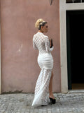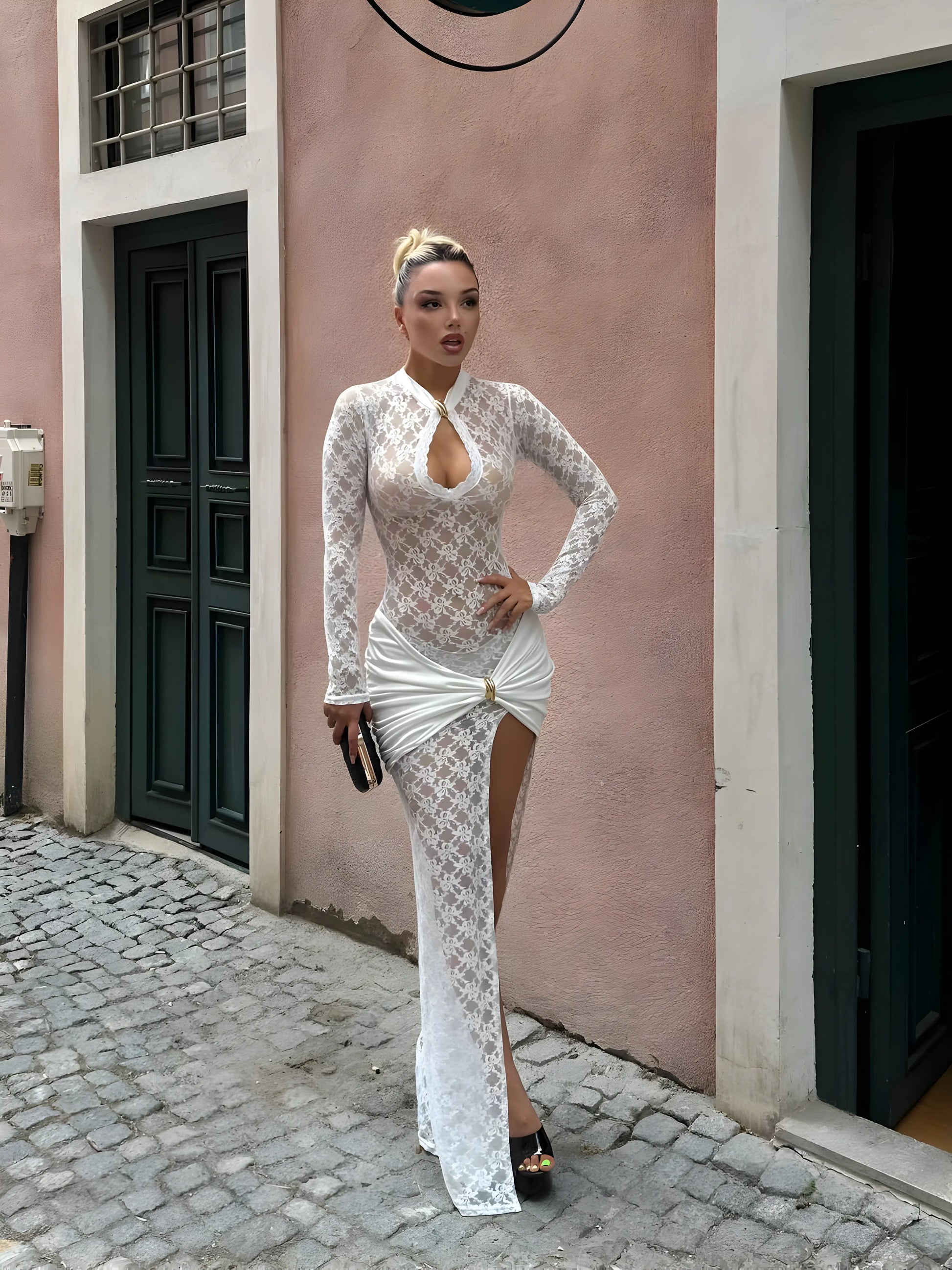 Command the room in this Lace Slit Maxi Dress, designed to highlight every curve with a bold, body-focused silhouette. Featuring intricate lace detailing and a daring high slit, this dress creates a head-turning presence for your next night out or exclusive event. The sleek, sleeveless design and low-cut neckline offer a modern luxury feel that ensures you feel effortlessly desirable. Crafted with a slim fit and breathable mesh, it provides a secure yet comfortable feel for all-night confidence.
