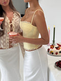Elevate your night-out look with this Lace Trim Patchwork Camisole, designed to highlight your silhouette with a bold, body-focused fit. Featuring delicate lace detailing at the neckline and hem, this top brings a flirty yet sophisticated energy to any social setting. The soft, stretchy fabric ensures you feel as confident as you look while turning heads from dinner to the dance floor.