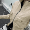 Step out in effortless style with the Miamor Ribbed Patchwork Utility Jacket, a quintessential piece for the fashion-forward. This khaki cropped jacket masterfully blends utilitarian design with chic detailing, featuring distinct ribbed textures and artful patchwork panels. Its structured silhouette, cinched at the waist, promises to elevate any outfit with an edgy yet sophisticated flair. Pairs perfectly with high-waisted denim for a casual daytime look or over a sleek top for an evening out.