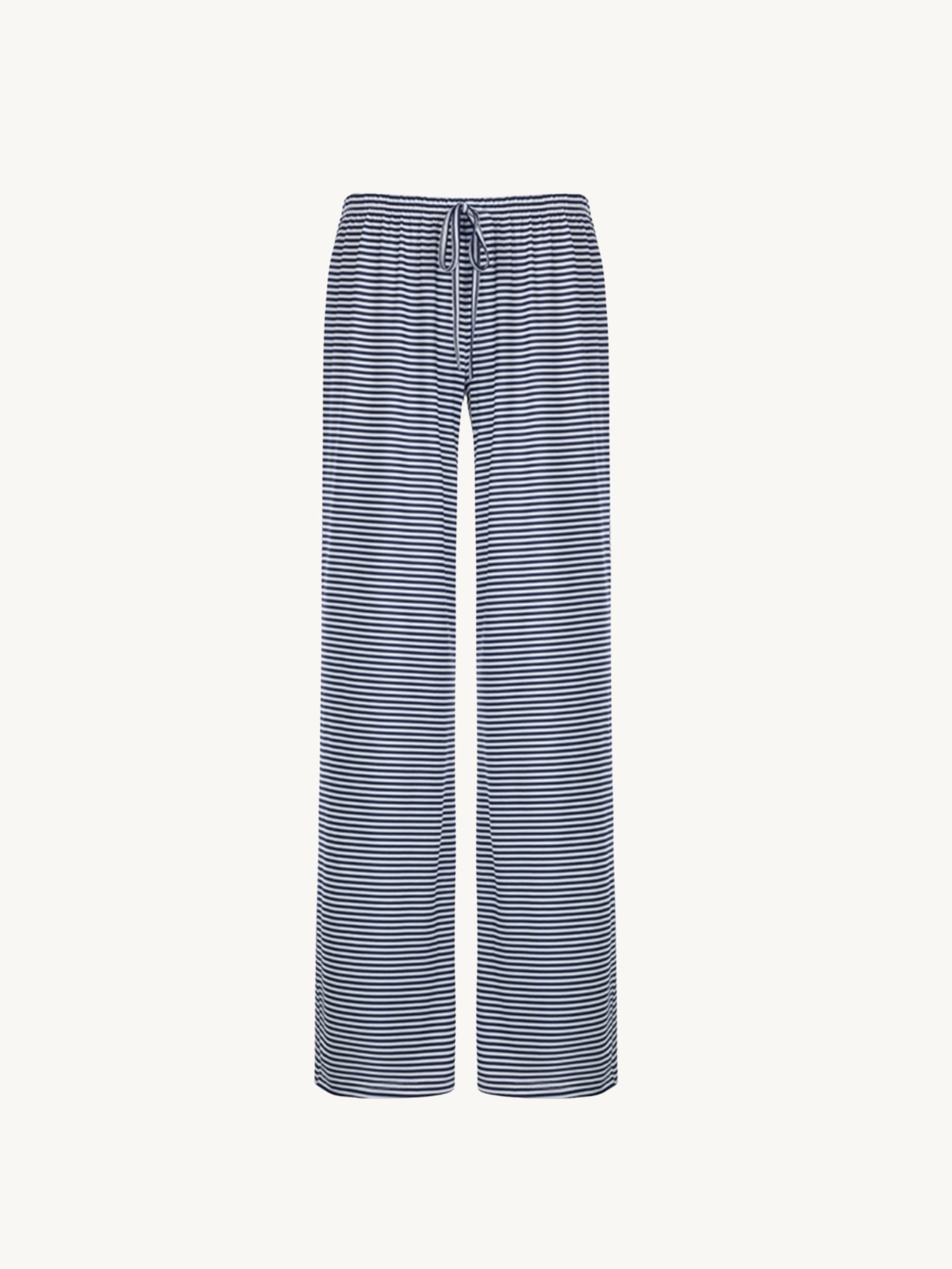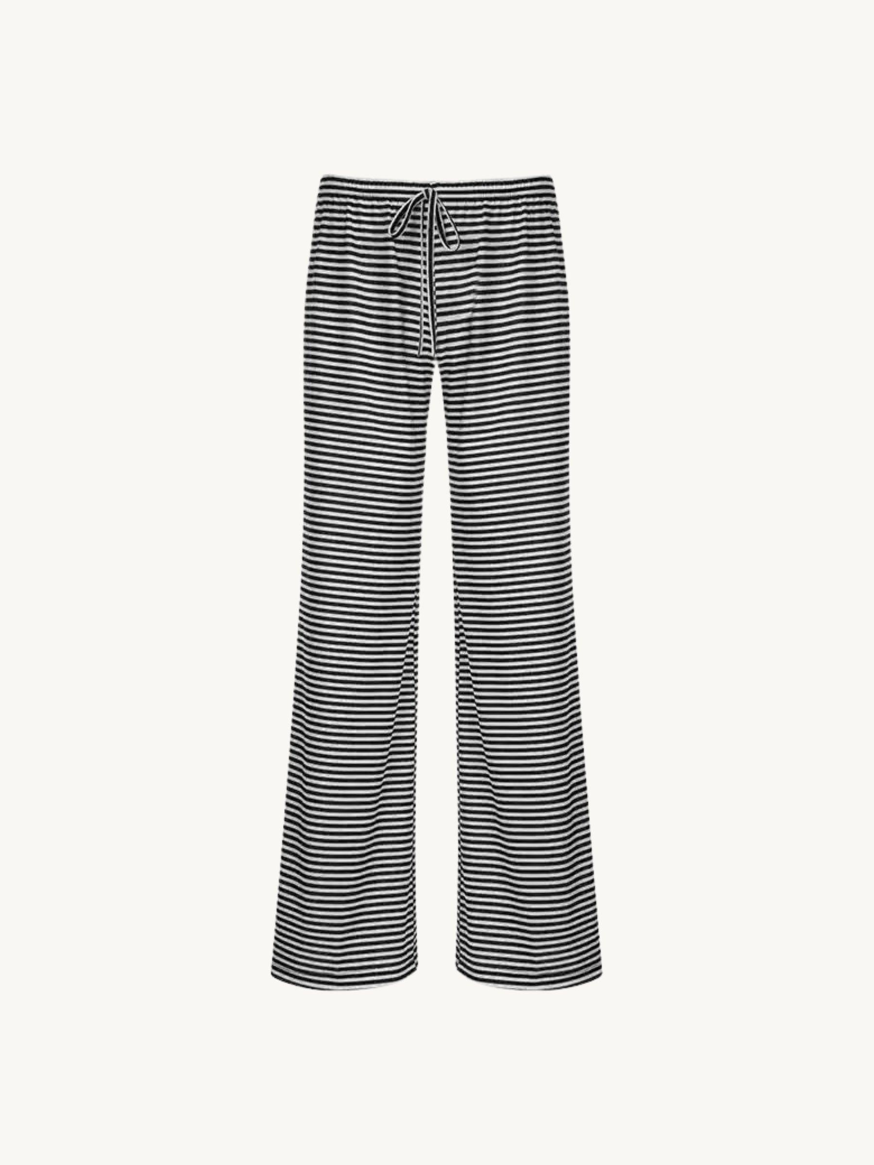 Kick back and lounge in style with the Logann Striped Lounge Pants. These classic pants feature a striped pattern and a comfortable wide-leg silhouette. The drawstring waistband allows for a customizable fit, while the soft and breathable fabric keeps you feeling cozy all day. Perfect for both lazy days at home and relaxed outings.