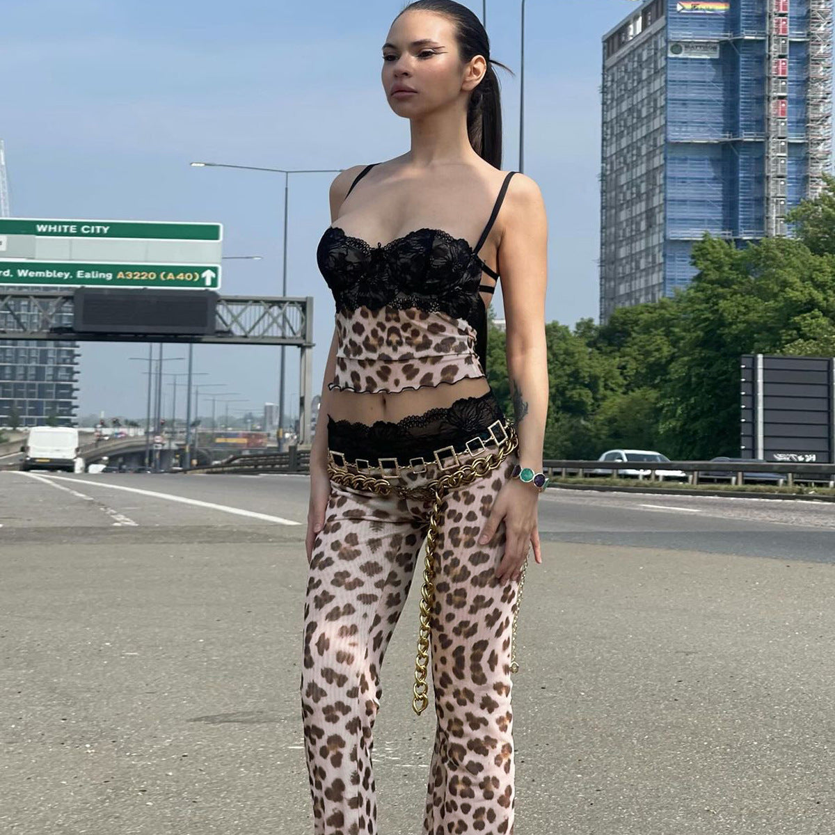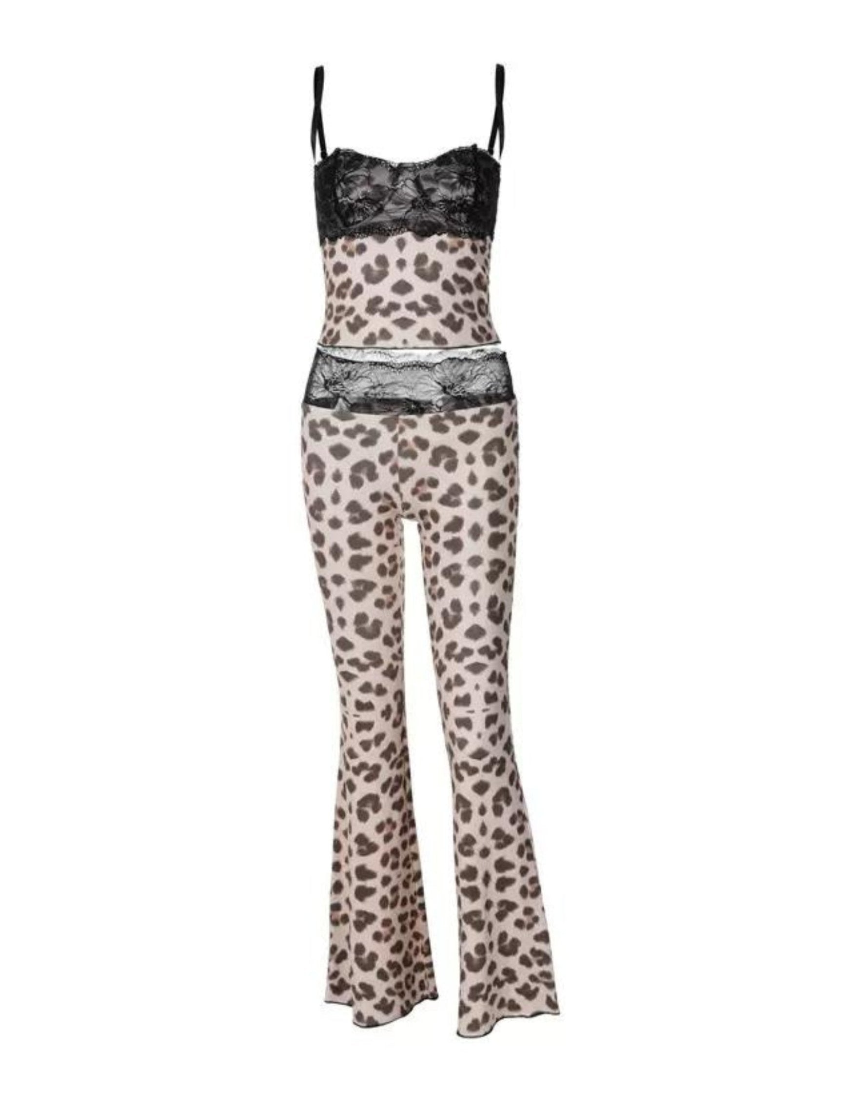 - Samora Leopard Mesh Camisole Set in Leopard